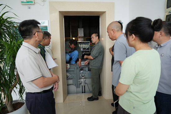 “遇到电梯困人别慌,先按紧迫按钮,再拨打这个电话……”教官在电梯间解说救援进程。